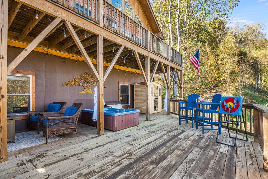 Escape to Hibernation Station – Little Bear, a cozy mountain retreat designed for relaxation and fun. 1 BR • 2.5 Bath • Sleeps 2 2 Decks with unobstructed mountain views NEW infrared sauna + private hot tub Two scenic decks for relaxing and stargazing Baby-friendly amenities Pet-friendly (up to 2 dogs) Perfect for couples seeking a peaceful mountain escape, with all the comforts and entertainment of a full-size cabin—just minutes from Maggie Valley attractions, hiking, and scenic drives.