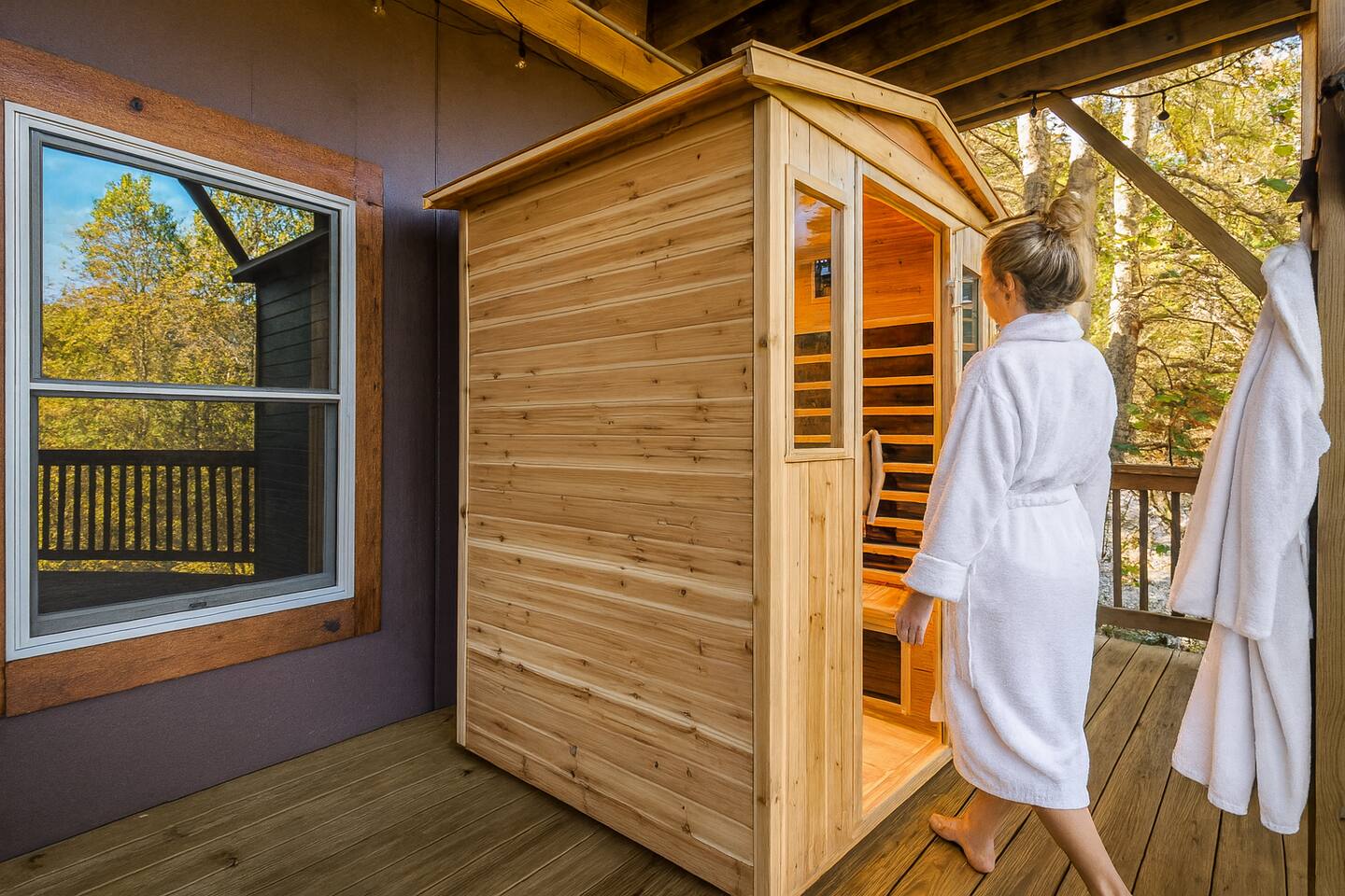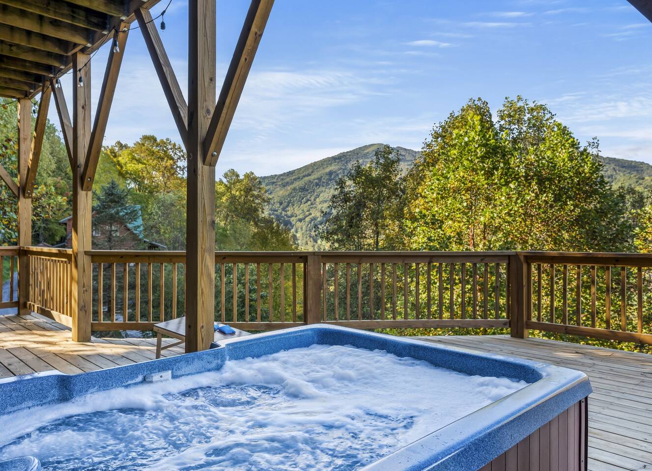 Escape to Hibernation Station – Little Bear, a cozy mountain retreat designed for relaxation and fun. 1 BR • 2.5 Bath • Sleeps 2 2 Decks with unobstructed mountain views NEW infrared sauna + private hot tub Two scenic decks for relaxing and stargazing Baby-friendly amenities Pet-friendly (up to 2 dogs) Perfect for couples seeking a peaceful mountain escape, with all the comforts and entertainment of a full-size cabin—just minutes from Maggie Valley attractions, hiking, and scenic drives.